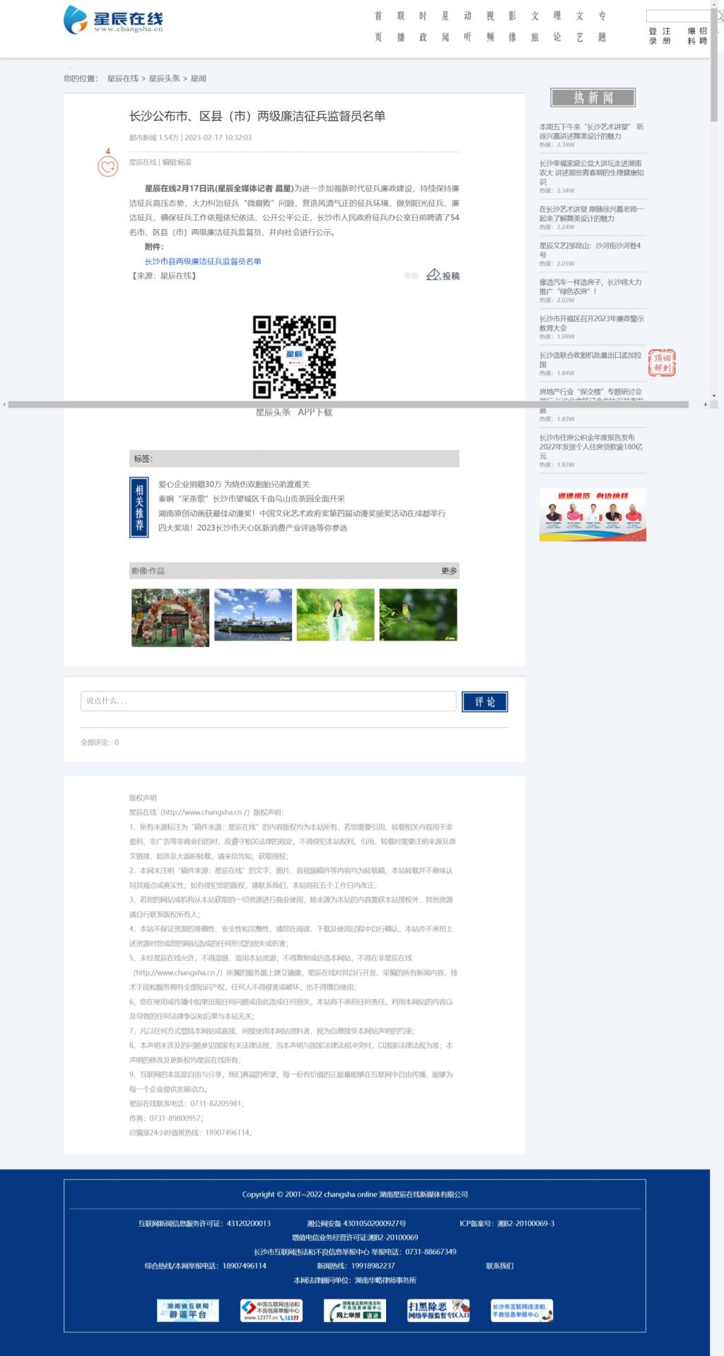 2月17日,星辰在线发布《长沙公布市、区县(市)两级廉洁征兵监督员名单》
