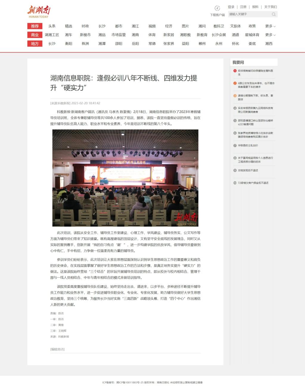 2月20日,新湖南发布《湖南信息职院:逢假必训八年不断线、四维发力提升“硬实力”》