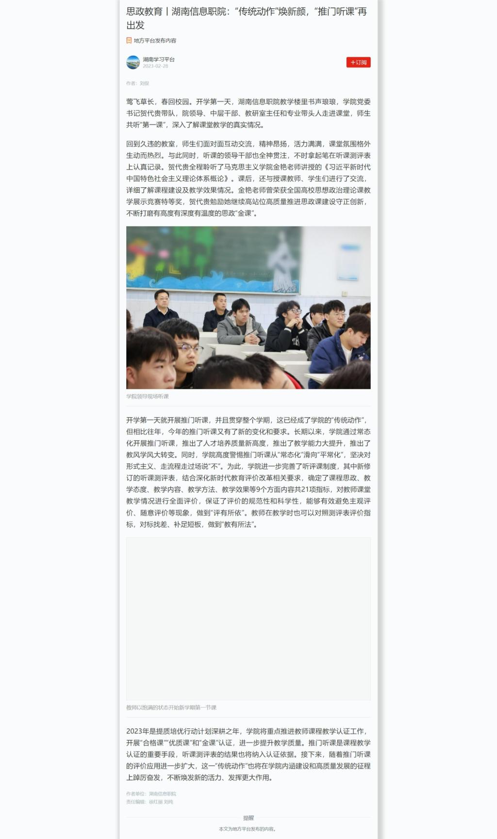 学习强国:思政教育丨湖南信息职院:“传统动作”焕新颜,“推门听课”再出发