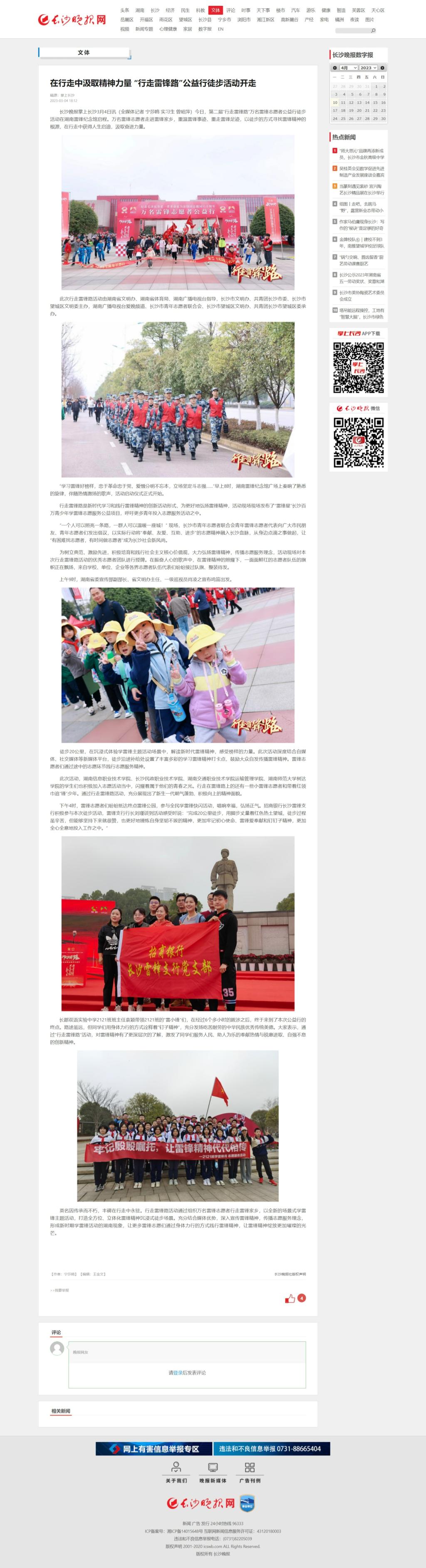 3月4日,长沙晚报网发布《在行走中汲取精神力量 “行走雷锋路”公益行徒步活动今日开走》