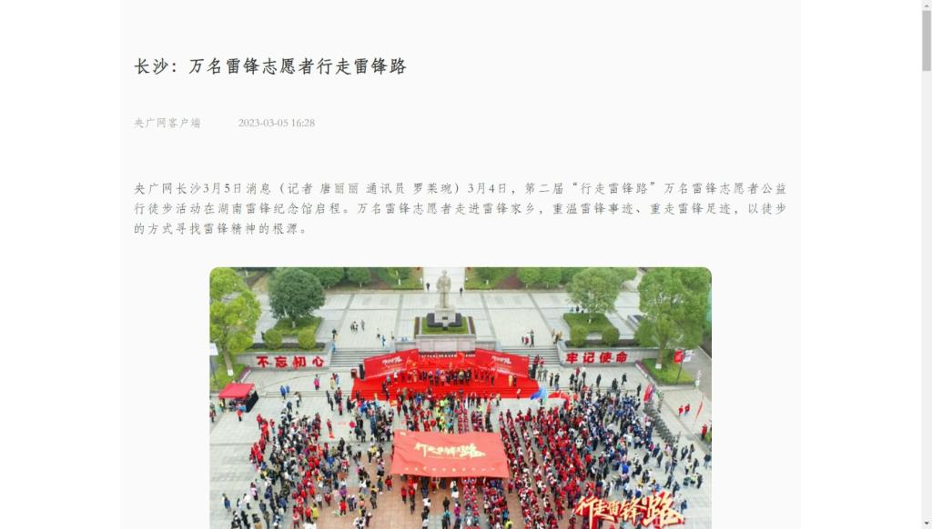 3月5日,央广网客户端发布《长沙:万名雷锋志愿者行走雷锋路》