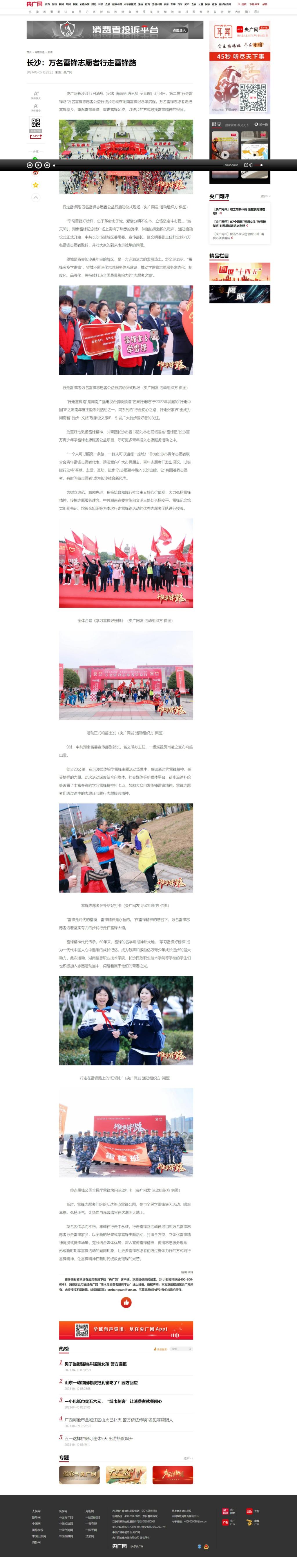 3月5日,央广网发布《长沙:万名雷锋志愿者行走雷锋路》