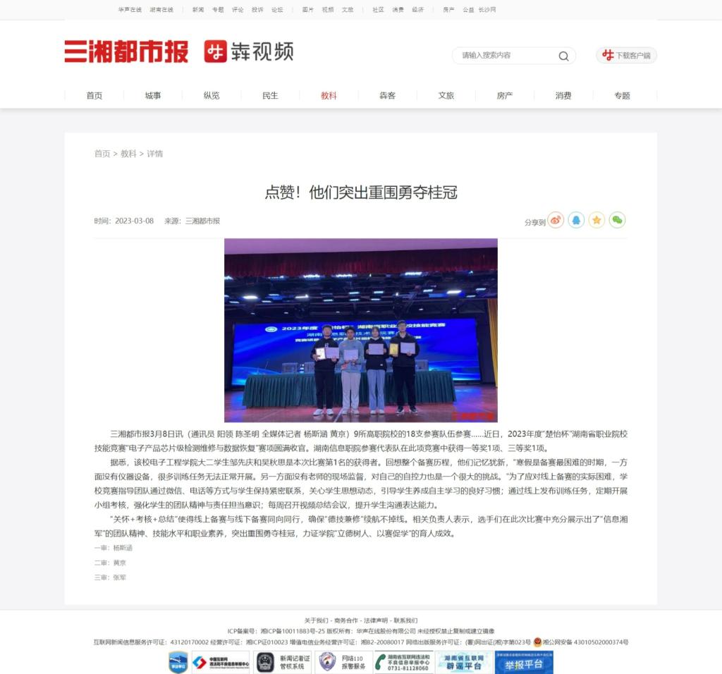 3月8日,三湘都市报发布《点赞!他们突出重围勇夺桂冠》