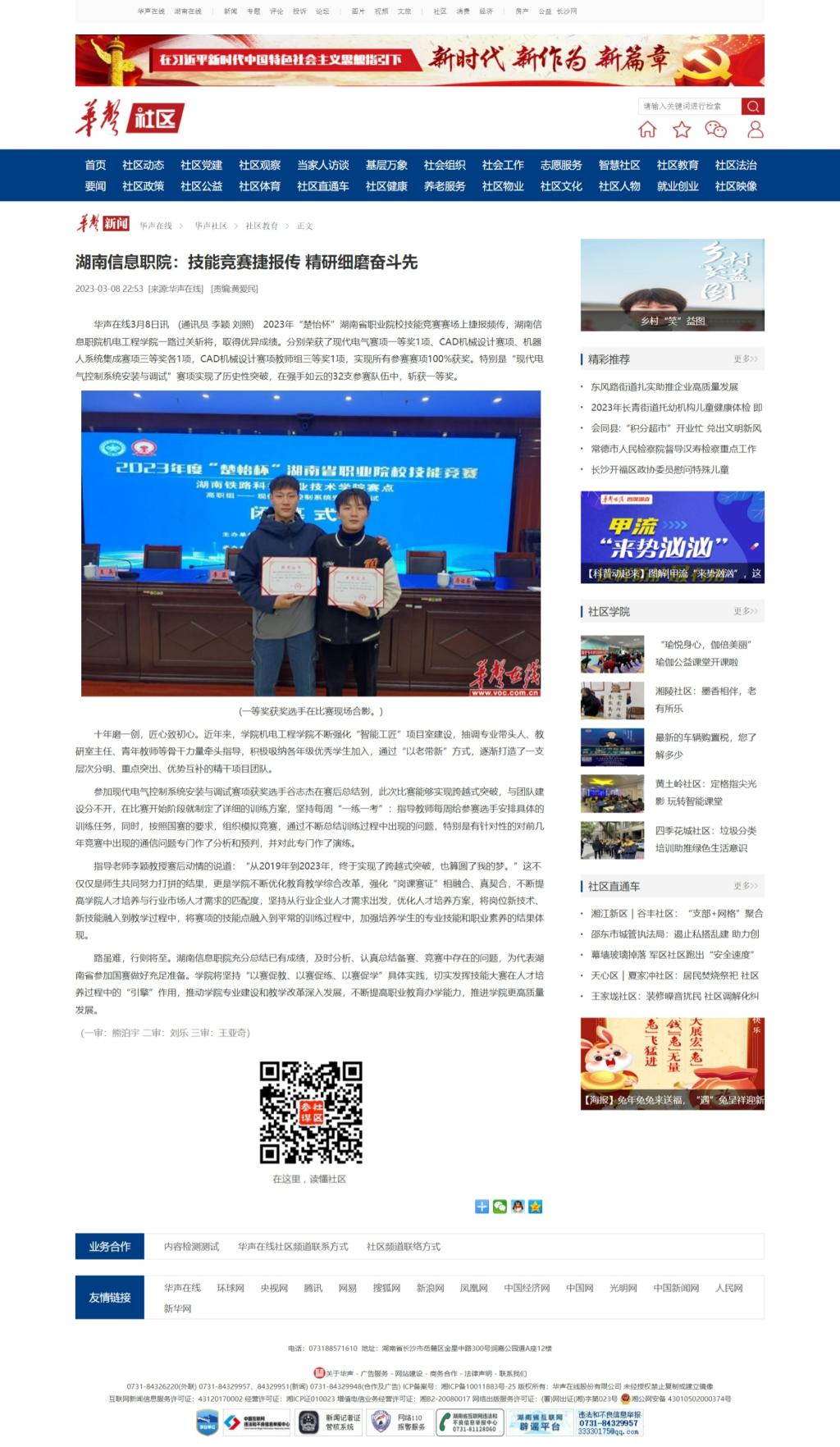 3月8日,华声在线发布《湖南信息职院:技能竞赛捷报传 精研细磨奋斗先》