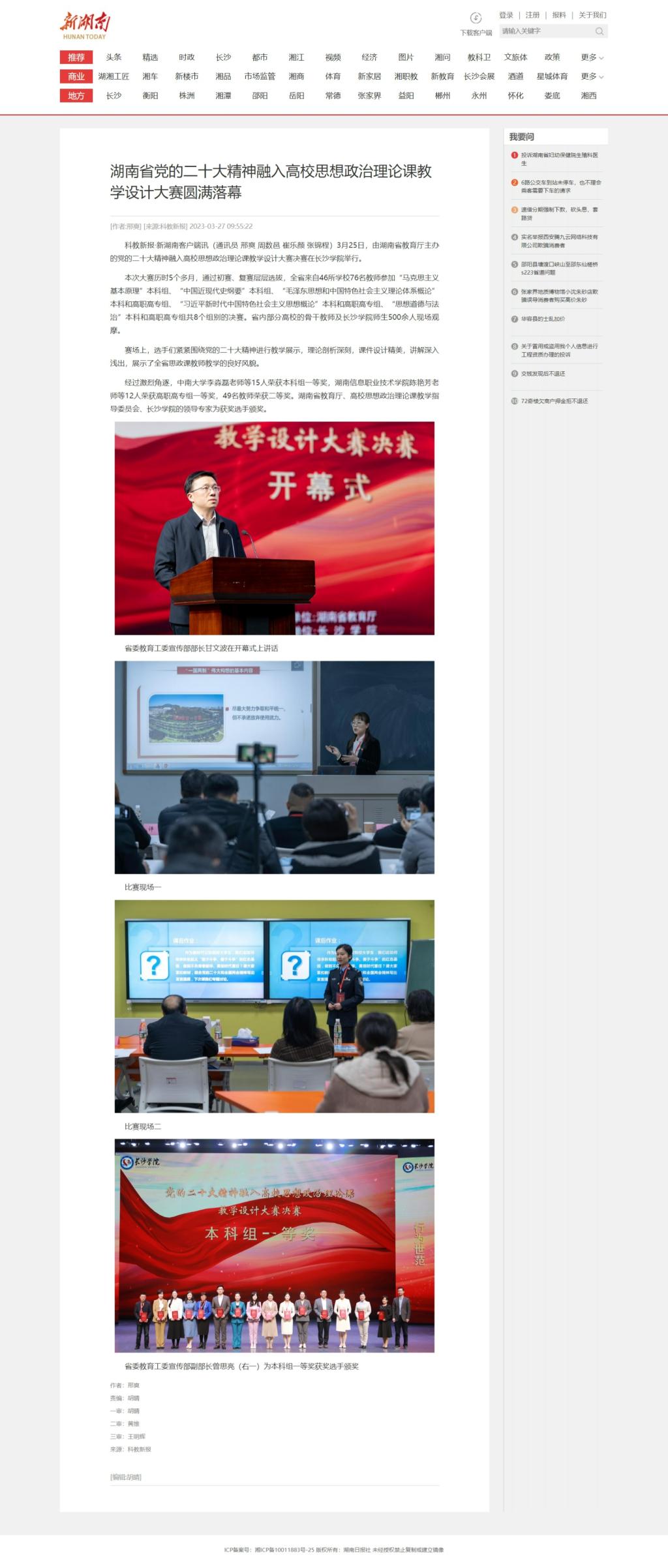 3月27日,新湖南发布《湖南省党的二十大精神融入高校思想政治理论课教学设计大赛圆满落幕》