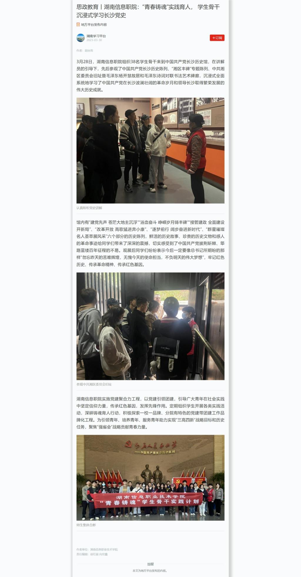 学习强国:思政教育丨湖南信息职院:“青春铸魂”实践育人, 学生骨干沉浸式学习长沙党史