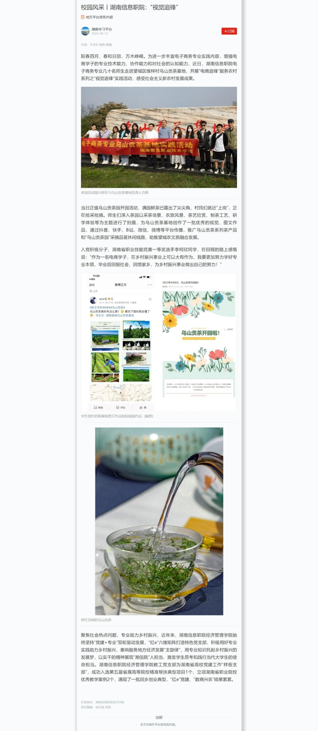 4月12日,学习强国发表《校园风采丨湖南信息职院:“视觉追锋”》