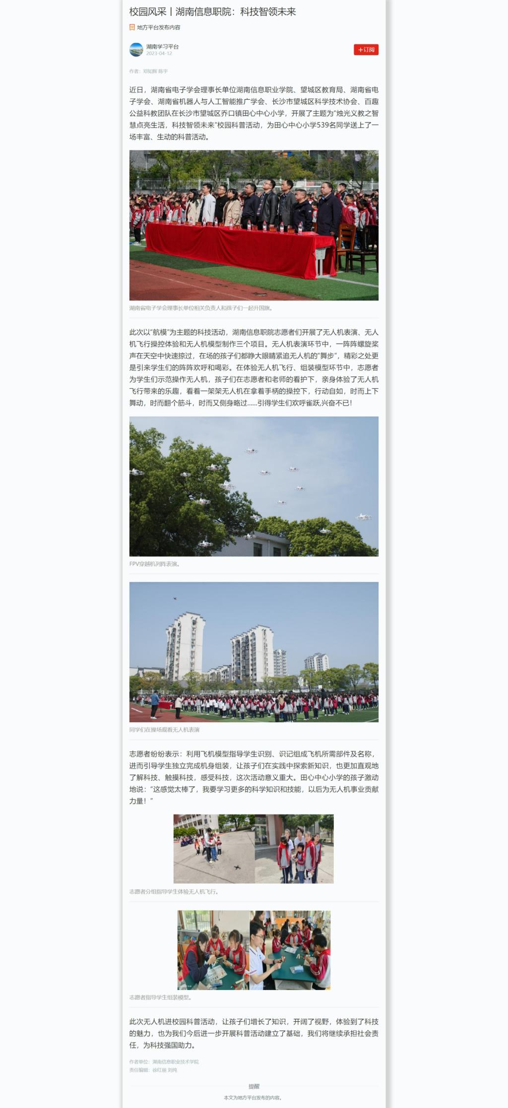 4月12日,学习强国发表《校园风采丨湖南信息职院:科技智领未来》