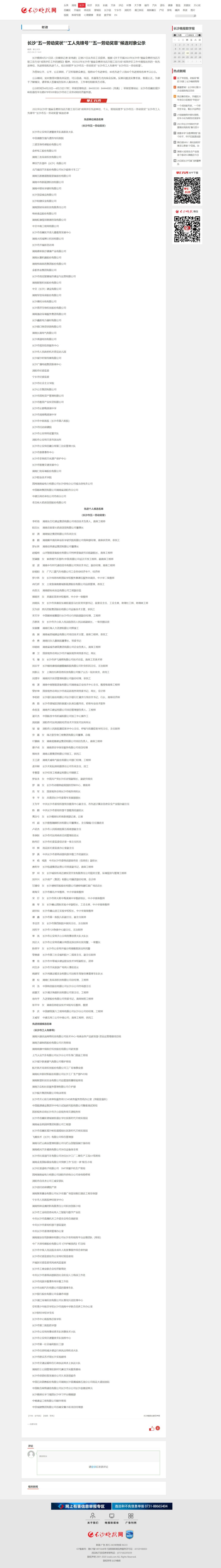 4月21日,长沙晚报网发表《长沙“五一劳动奖状”“工人先锋号”“五一劳动奖章”候选对象公示》
