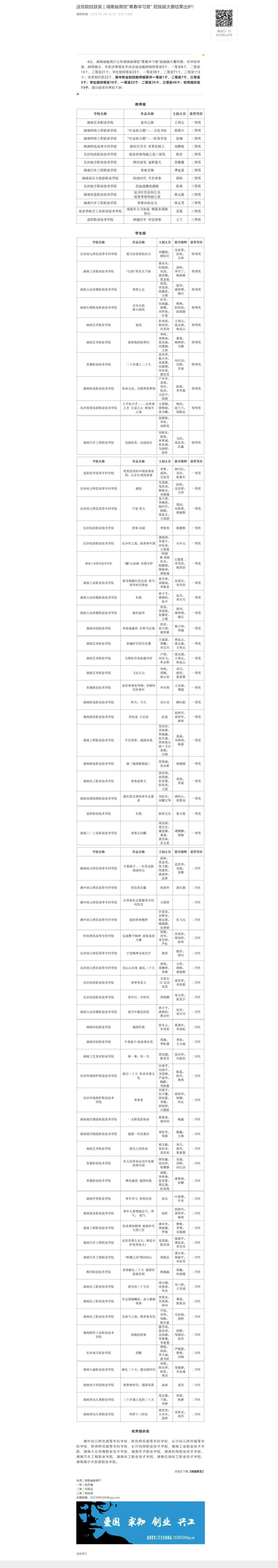5月8日,微信(湘微职教)发布《这些院校获奖 | 湖南省高校“青春学习堂” 短视频大赛结果出炉!》