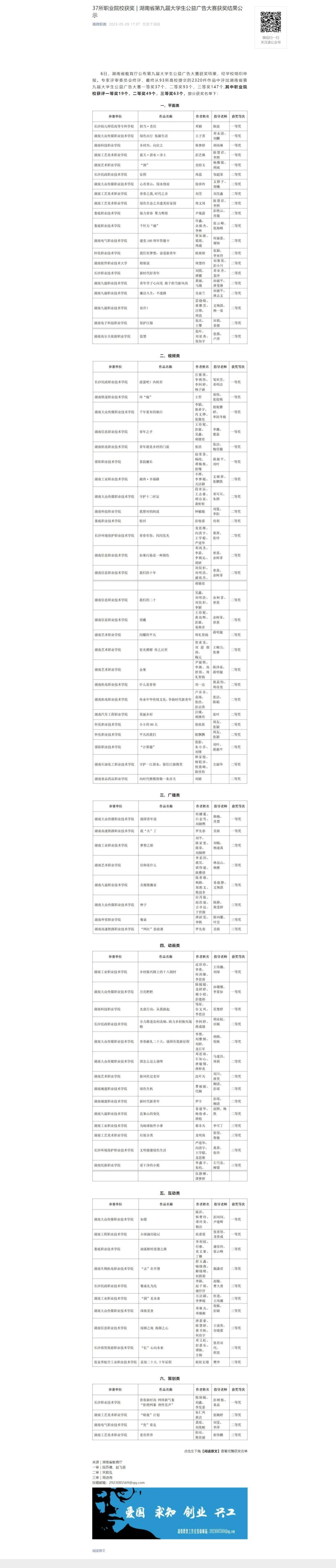 5月9日,微信(湘微职教)发布《37所职业院校获奖 | 湖南省第九届大学生公益广告大赛获奖结果公示》