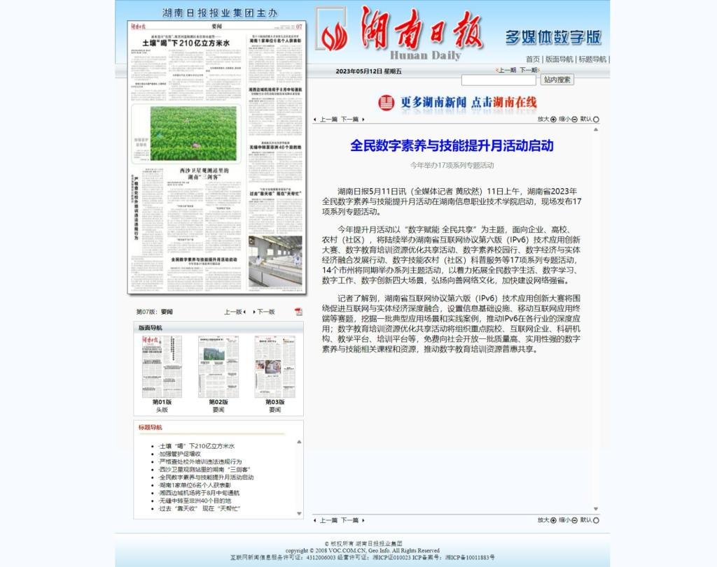 5月12日,湖南日报发布《全民数字素养与技能提升月活动启动》