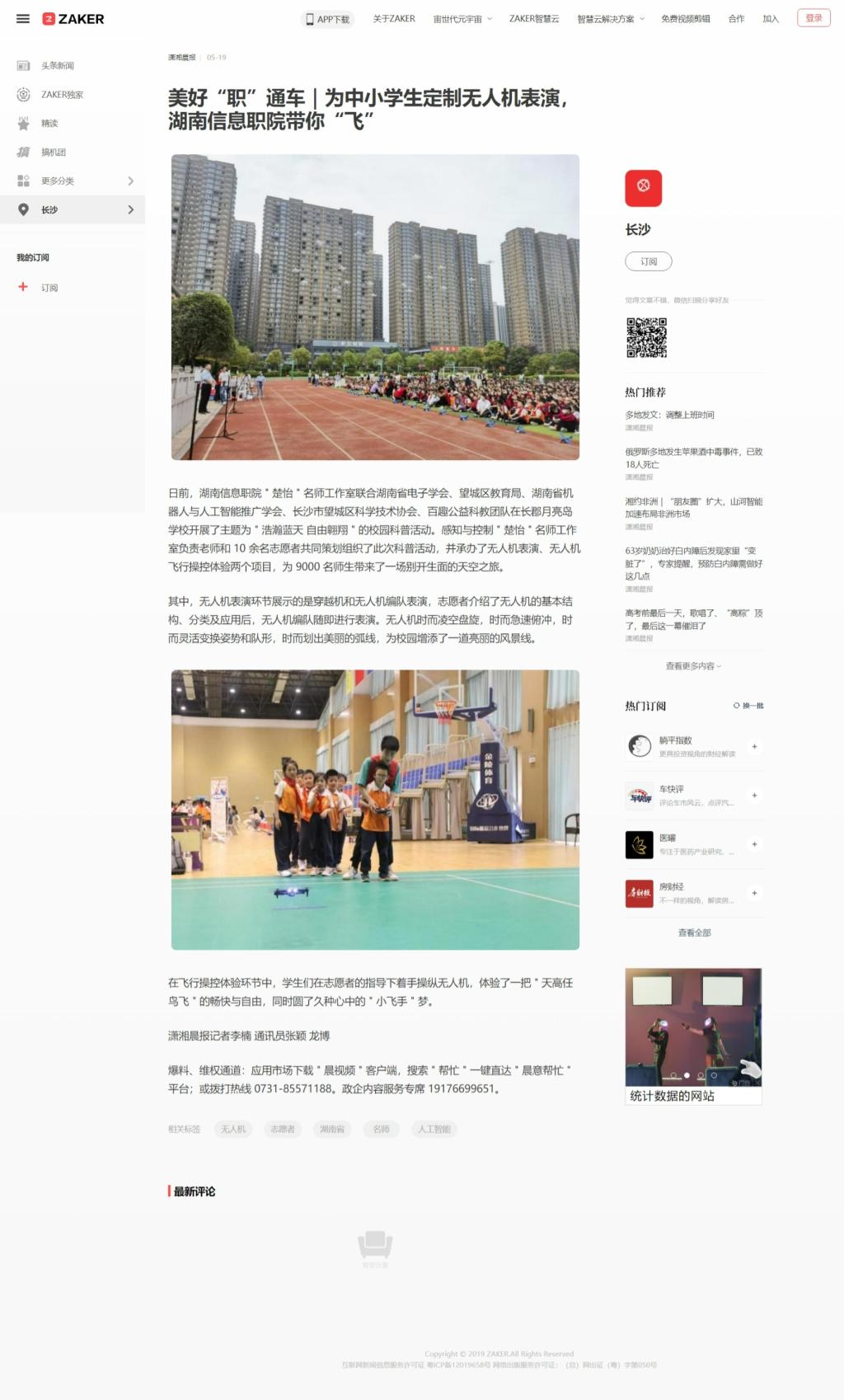 5月19日,ZAKER发布《美好“职”通车|为中小学生定制无人机表演,湖南信息职院带你“飞”》