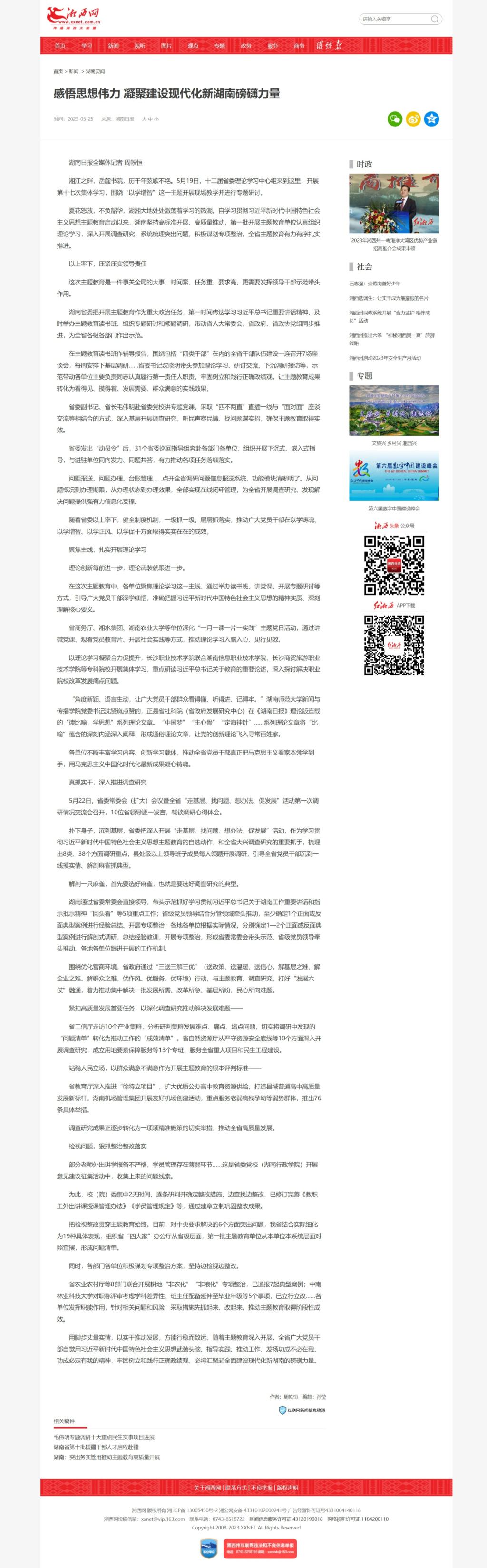 5月25日,湘西网发布《感悟思想伟力 凝聚建设现代化新湖南磅礴力量》