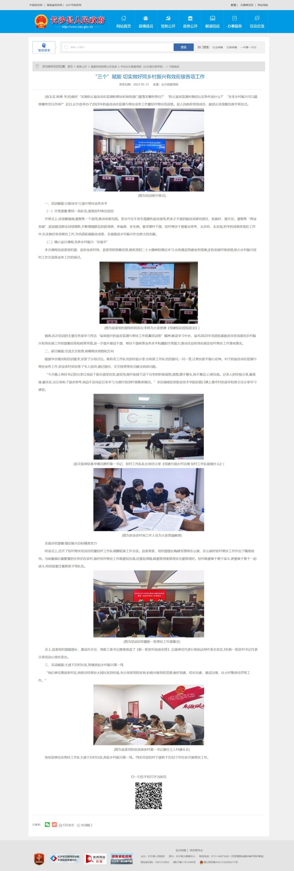5月31日,长沙县人民政府发布《“三个”赋能 切实做好同乡村振兴有效衔接各项工作》
