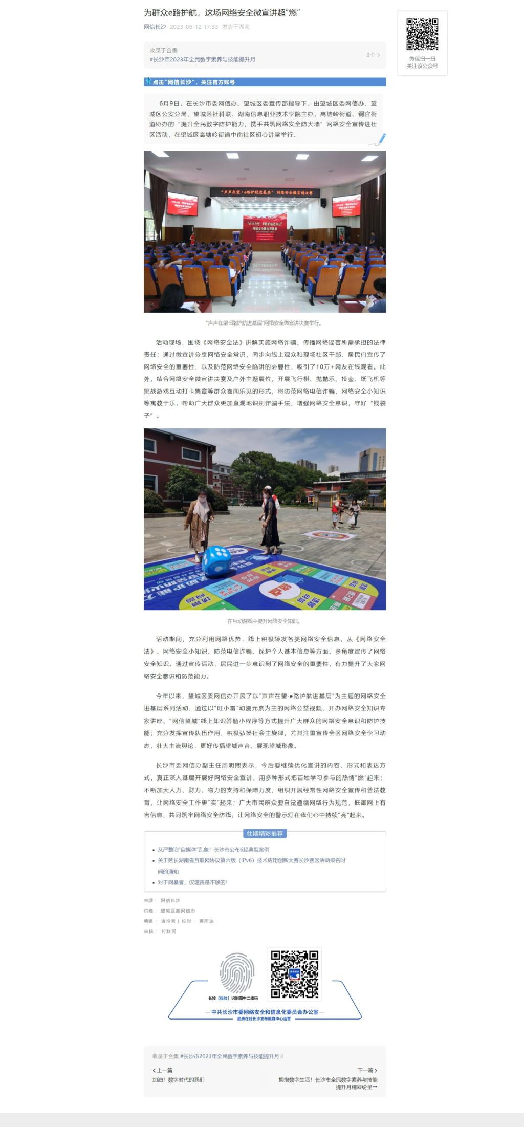 6月12日,微信(网信长沙)发布《为群众e路护航,这场网络安全微宣讲超“燃”》