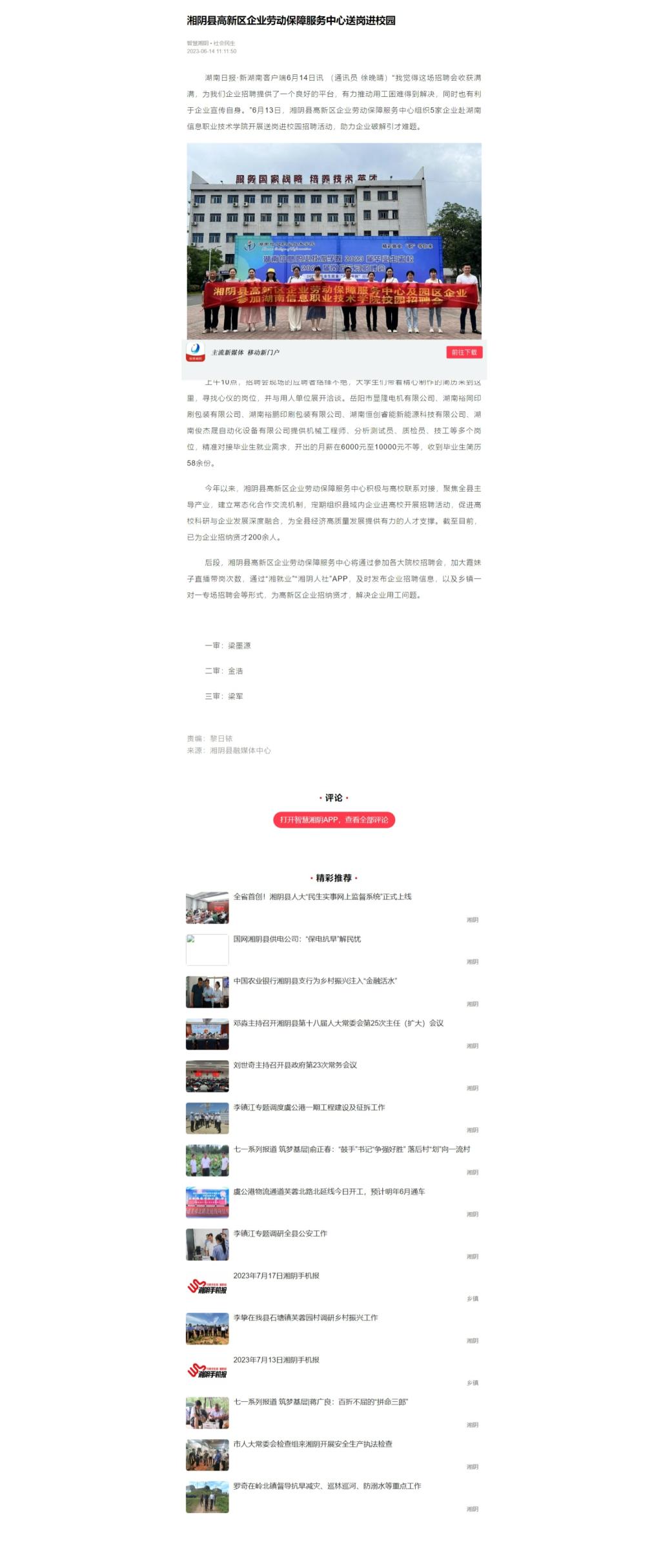 6月14日,湖南教育发布发布《湘阴县高新区企业劳动保障服务中心送岗进校园!》
