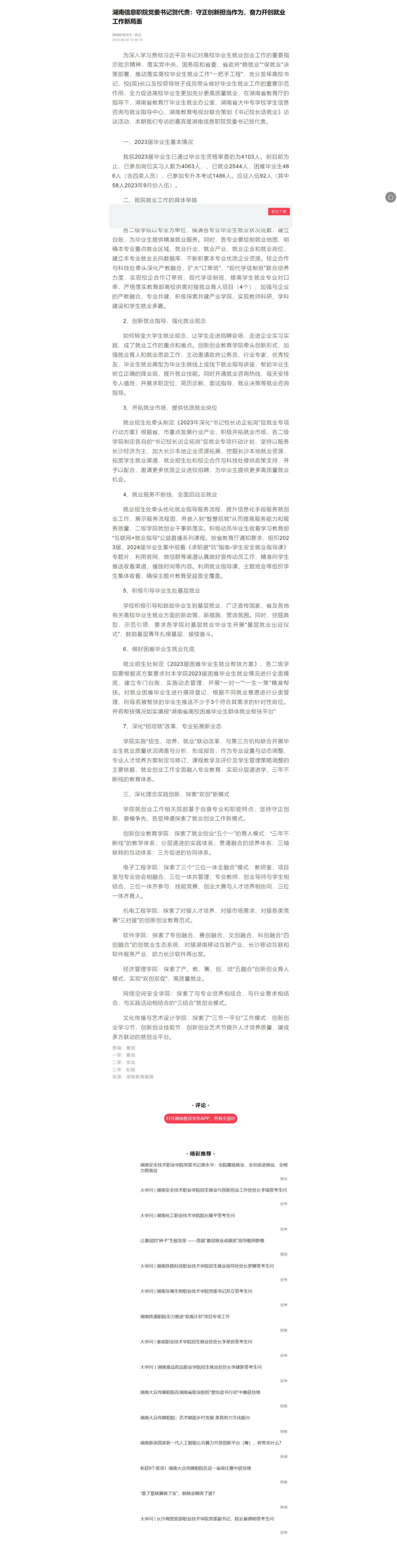 6月29日,湖南教育发布发布《湖南信息职院党委书记贺代贵:守正创新担当作为,奋力开创就业工作新局面》