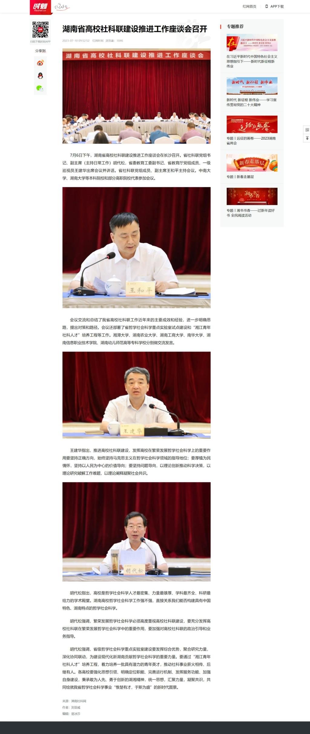 7月10日,红网发布《湖南省高校社科联建设推进工作座谈会召开》