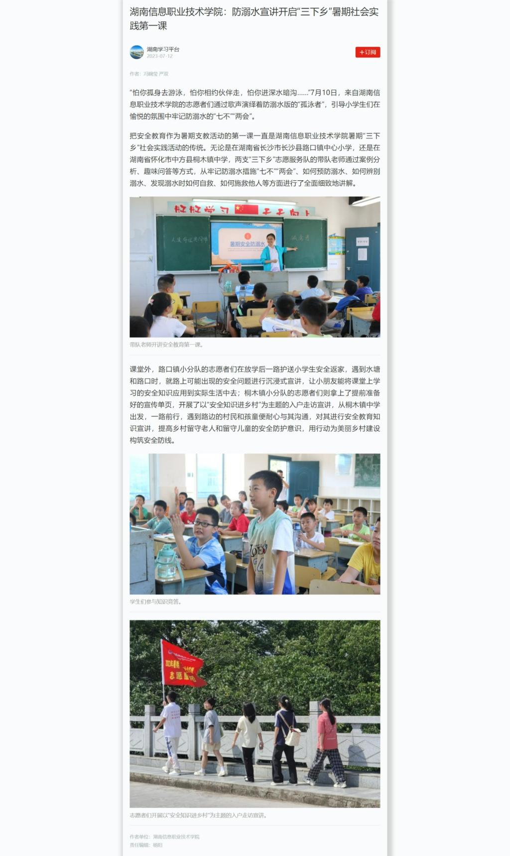 7月12日,学习强国发布《beat365英国官方网站:防溺水宣讲开启“三下乡”暑期社会实践第一课》