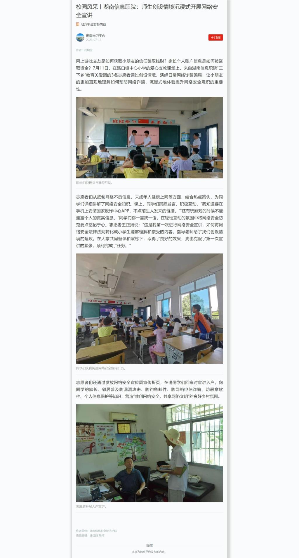 学习强国:校园风采丨湖南信息职院:师生创设情境沉浸式开展网络安全宣讲