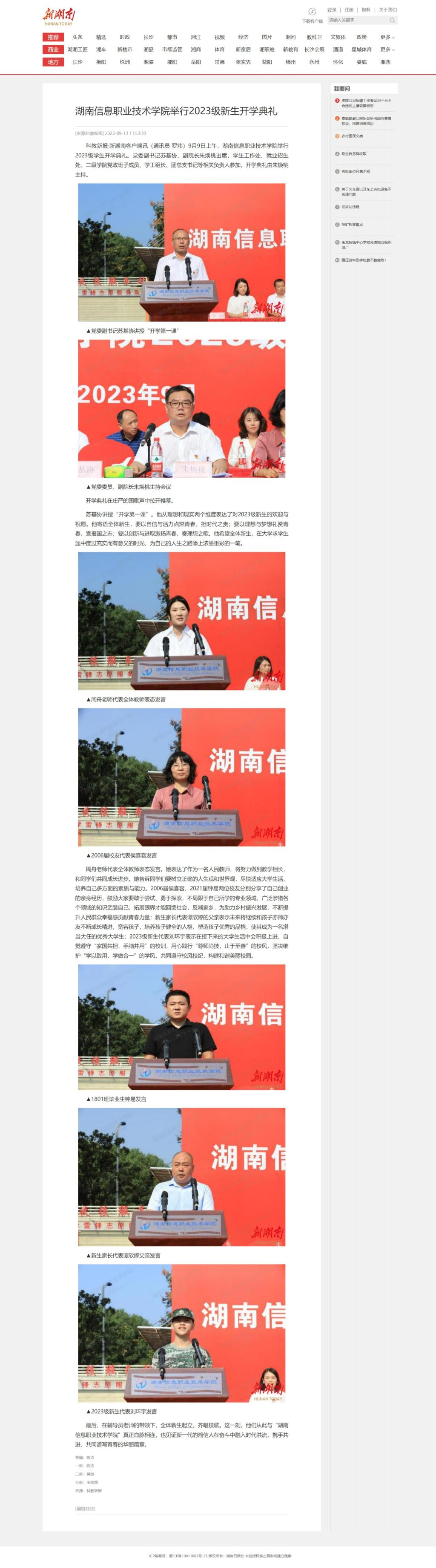 9月13日,新湖南发布《beat365英国官方网站举行2023级新生开学典礼》