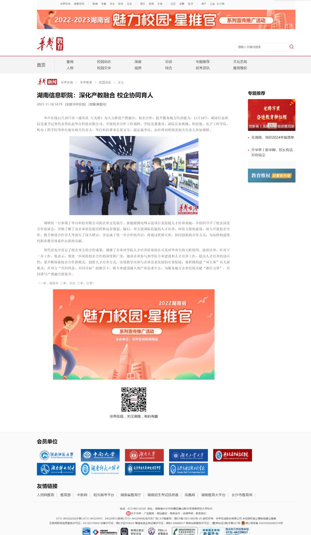 11月18日,华声在线发布《湖南信息职院:深化产教融合 校企协同育人》
