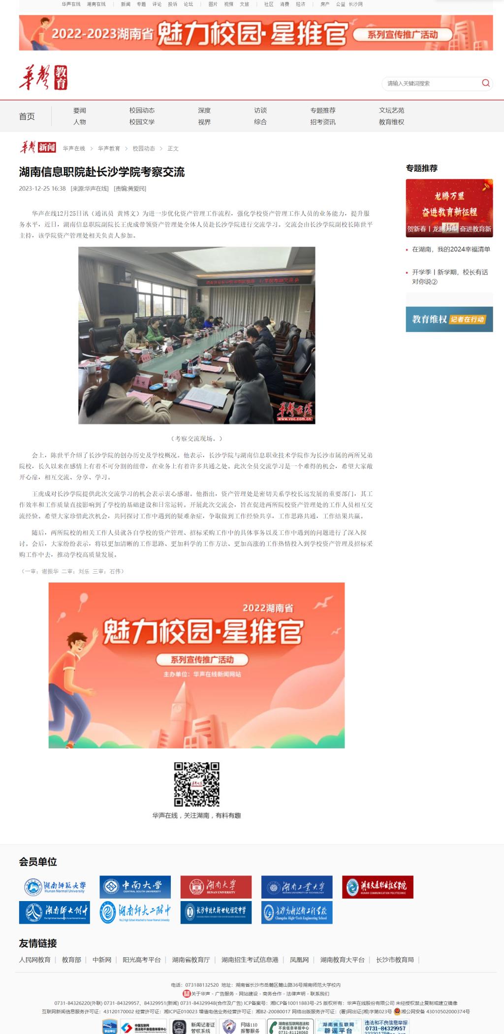 12月25日,华声在线发布《湖南信息职院赴长沙学院考察交流》