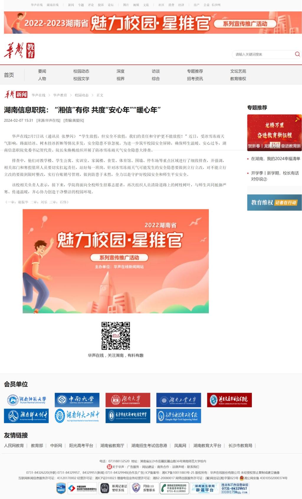 2月7日,华生在线发布《湖南信息职院: “湘信”有你 共度“安心年”“暖心年”》