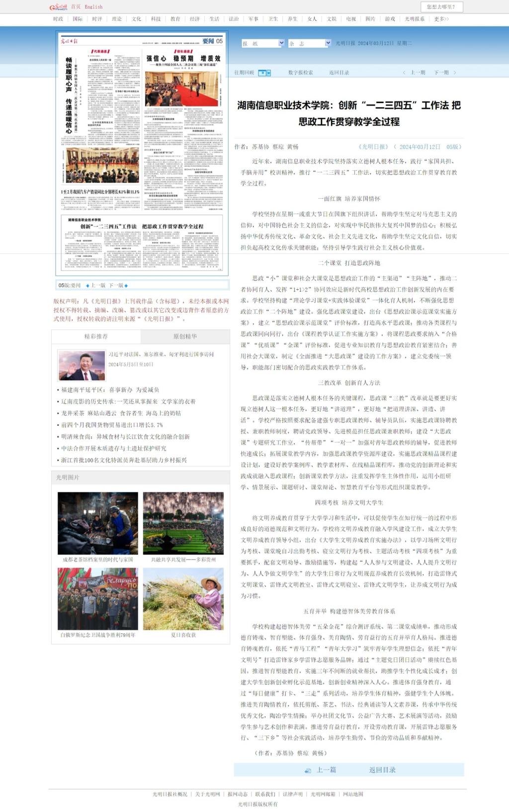 3月12日,光明日报发布《beat365英国官方网站:创新“一二三四五”工作法 把思政工作贯穿教学全过程》