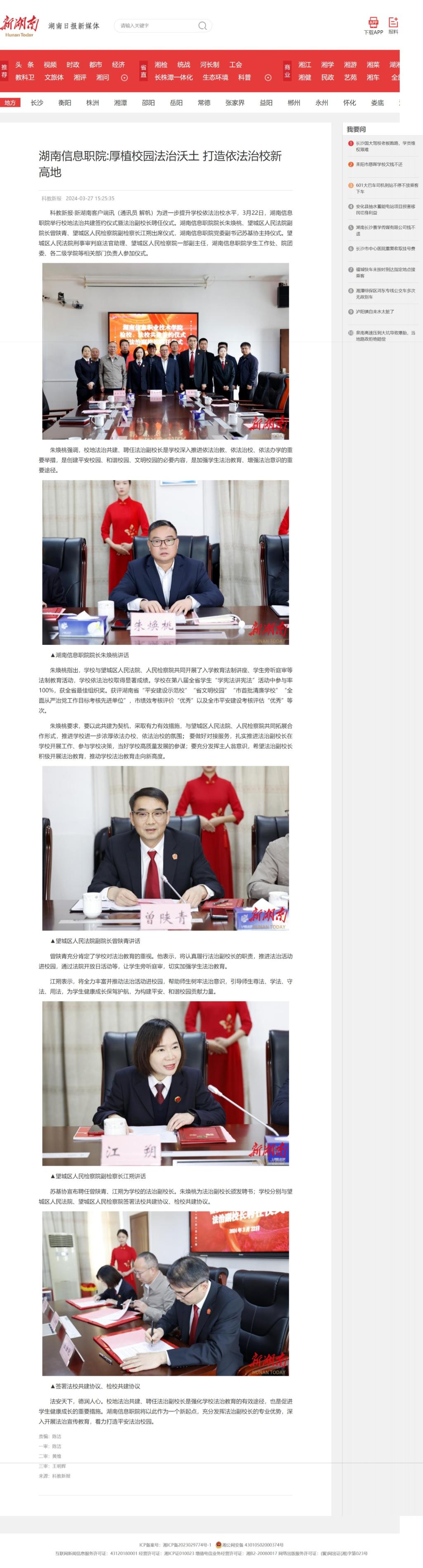 3月27日,新湖南发布《湖南信息职院:厚植校园法治沃土 打造依法治校新高地》