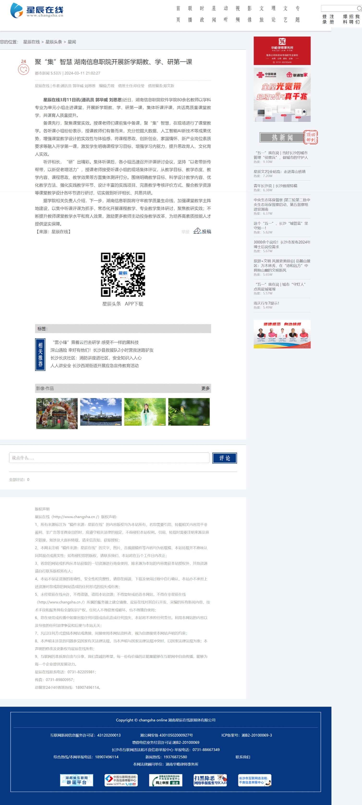 3月11日,星辰在线发布《聚“集”智慧 湖南信息职院开展新学期教、学、研第一课》