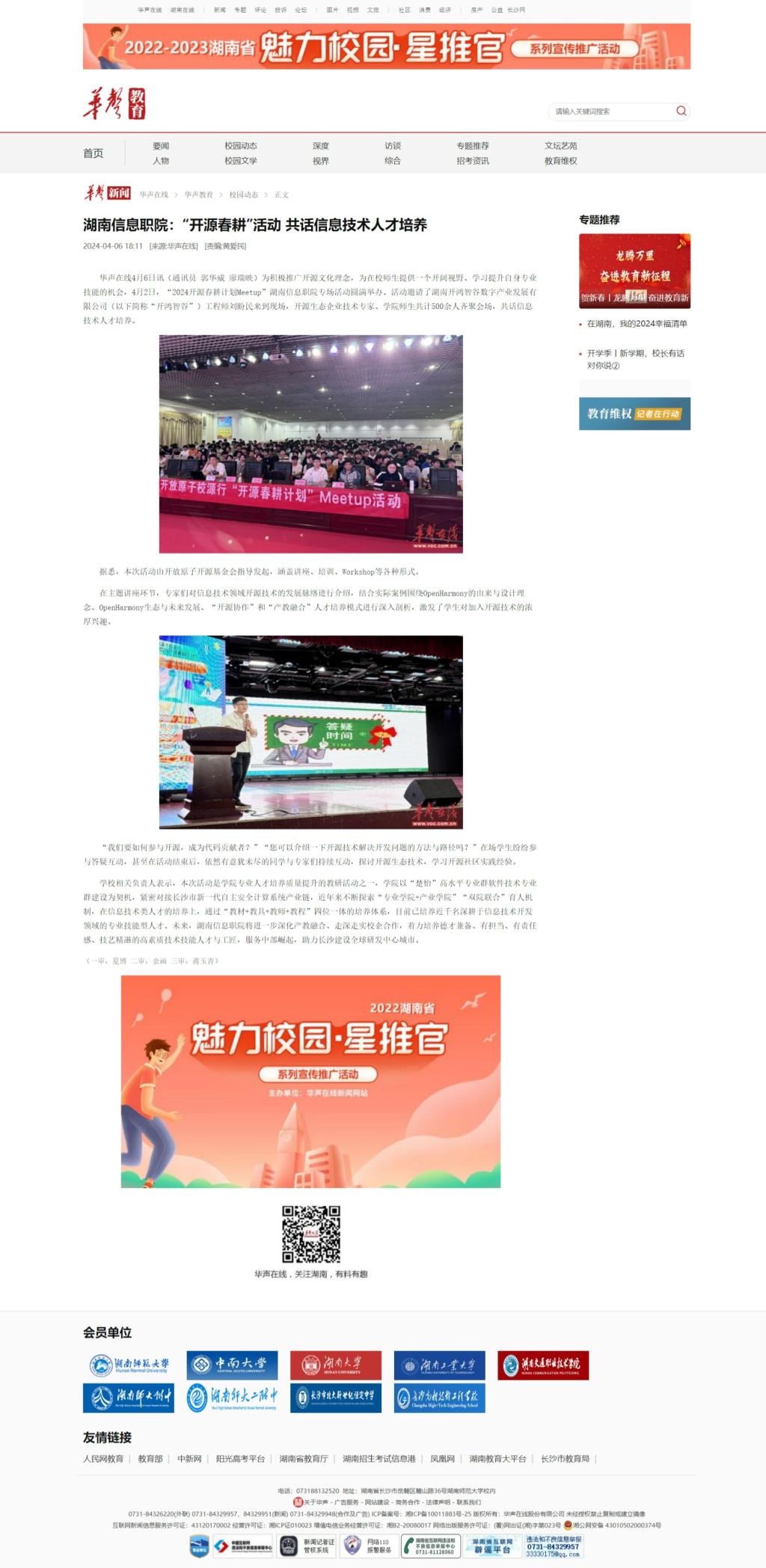 4月6日,华声在线发布《湖南信息职院:“开源春耕”活动 共话信息技术人才培养》