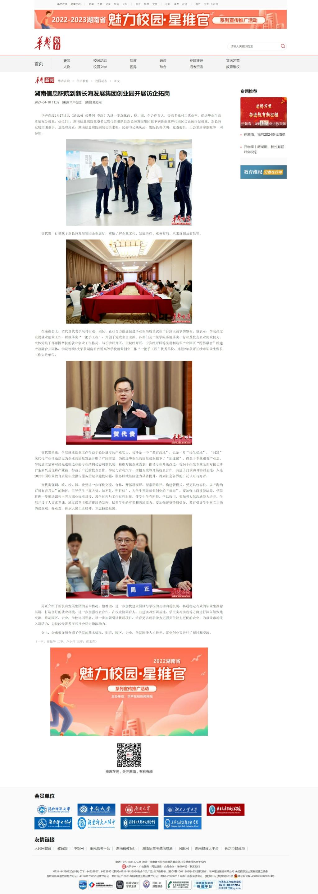 4月18日,华声在线发布《湖南信息职院到新长海发展集团创业园开展访企拓岗》