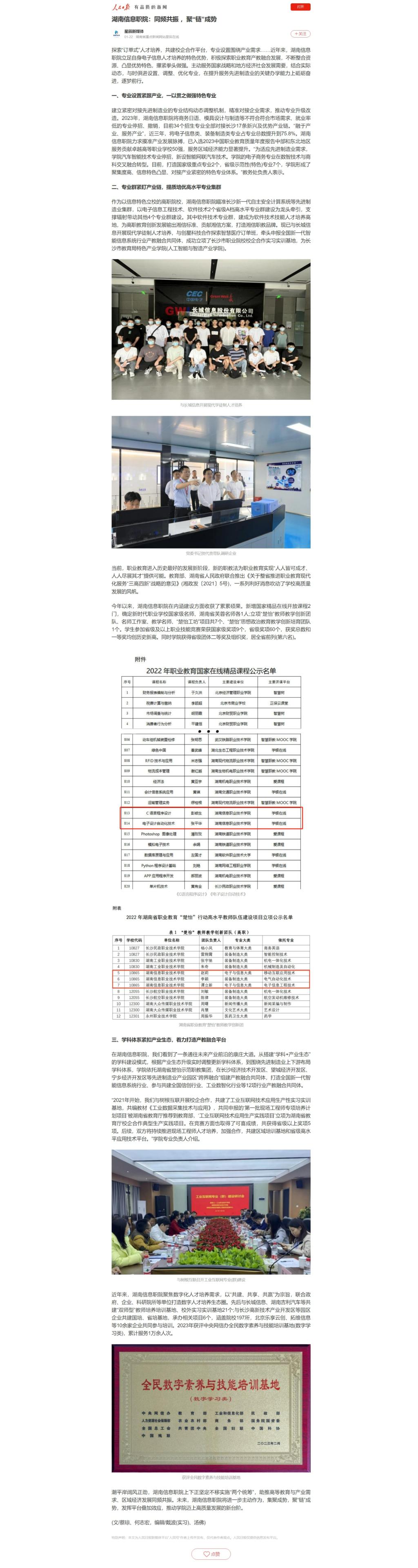 1月22日,人民日报人民号发布《湖南信息职院:同频共振 ,聚“链”成势》