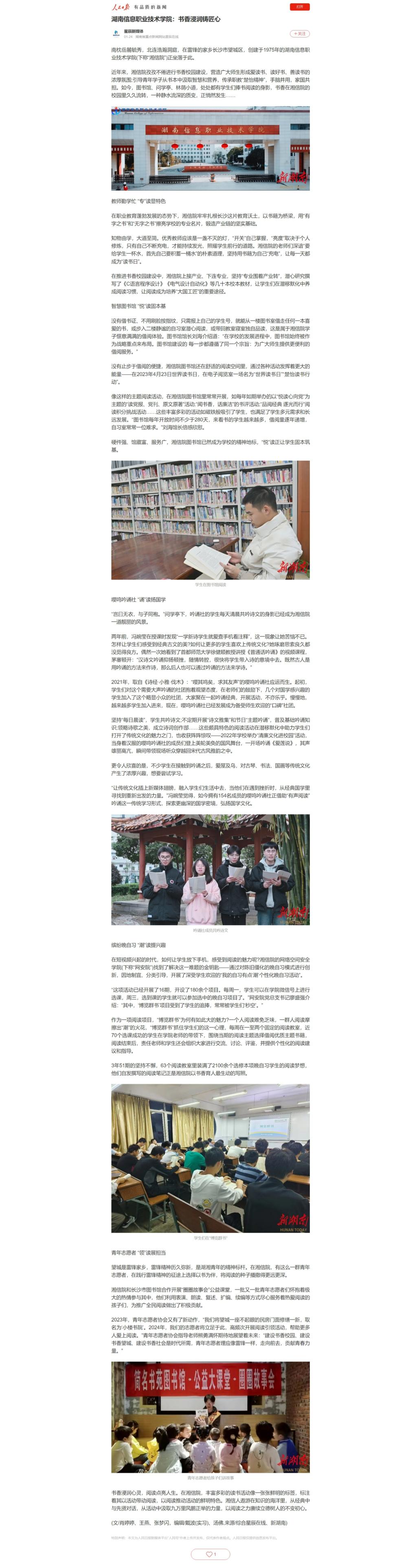 1月24日,人民日报发布《beat365英国官方网站:书香浸润铸匠心》