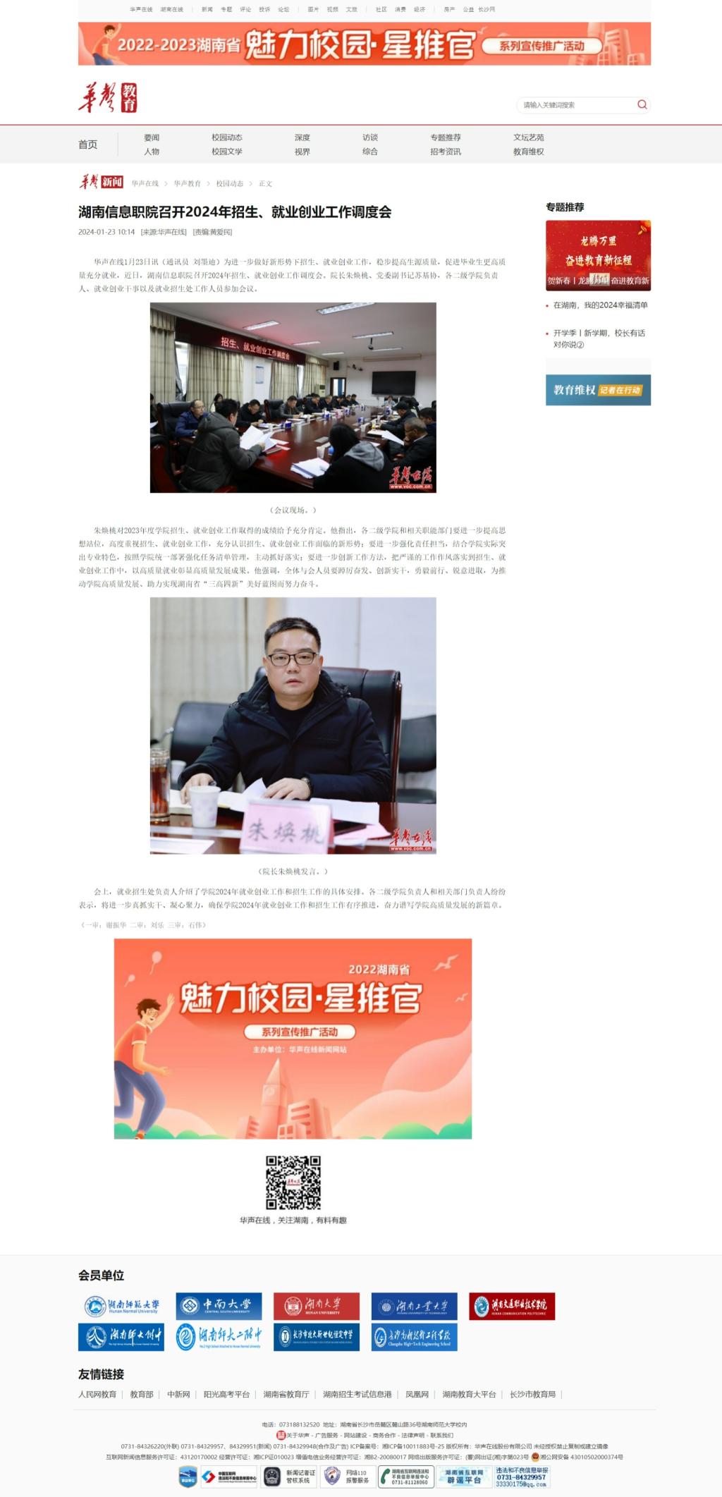 1月23日,华声在线发布《湖南信息职院召开2024年招生、就业创业工作调度会》