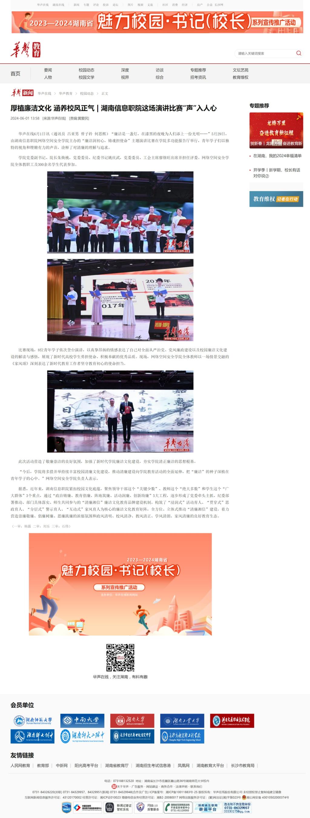 6月1日,华声在线发布《厚植廉洁文化 涵养校风正气 | 湖南信息职院这场演讲比赛“声”入人心》