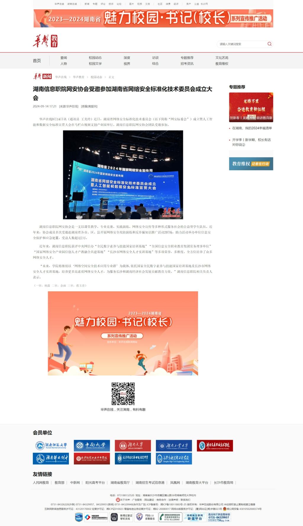 9月14日,华声在线发布《湖南信息职院网安协会受邀参加湖南省网络安全标准化技术委员会成立大会》