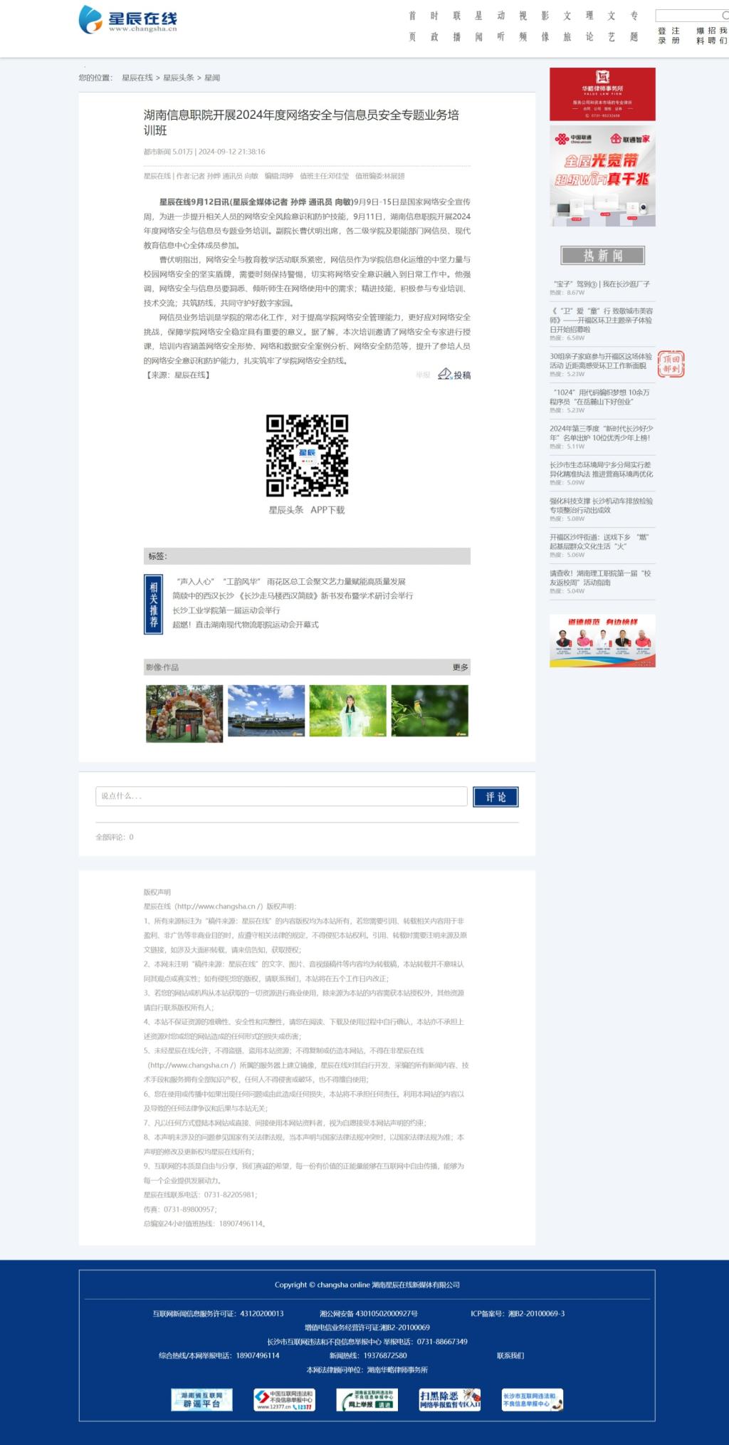 9月12日,星辰在线发布《湖南信息职院开展2024年度网络安全与信息员安全专题业务培训班》