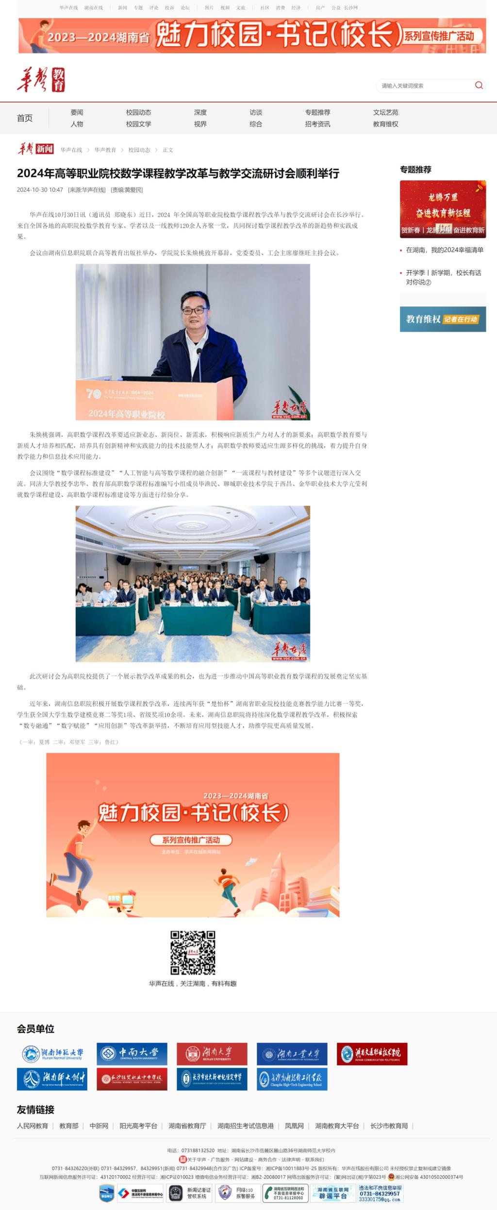 10月30日,华声在线发布《2024年高等职业院校数学课程教学改革与教学交流研讨会顺利举行》