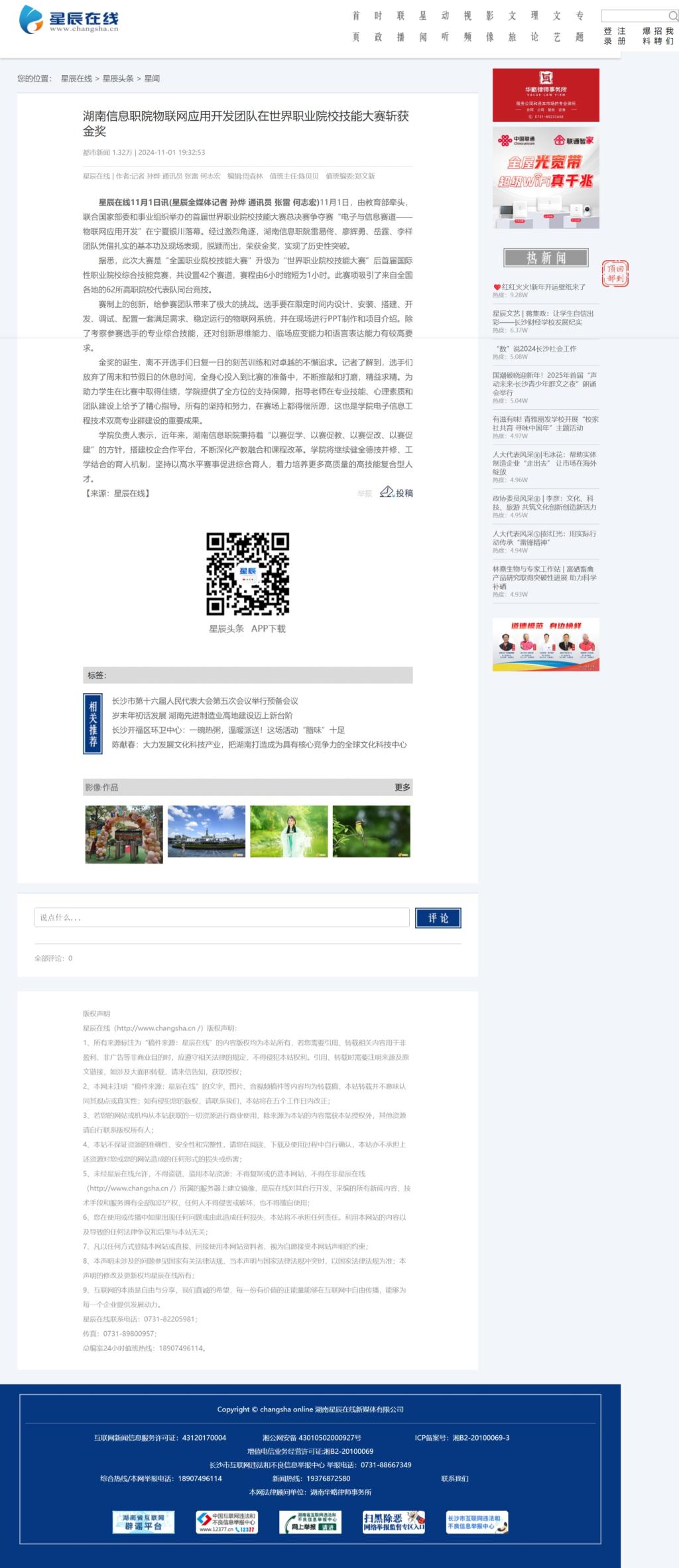 11月1日,星辰在线发布《湖南信息职院物联网应用开发团队在世界职业院校技能大赛斩获金奖》
