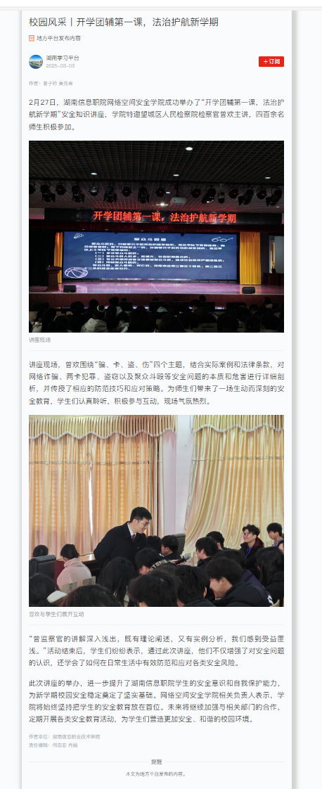 3月3日,学习强国发布《开学团辅第一课,法治护航新学期》。