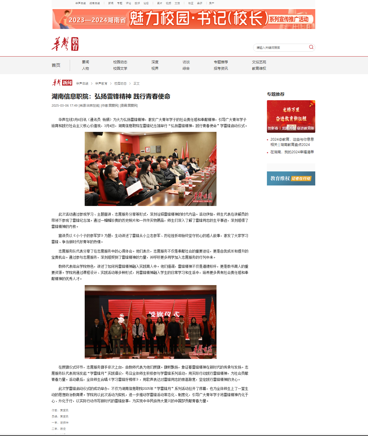 3月6日,华声在线发布《湖南信息职院:弘扬雷锋精神,践行青春使命》。