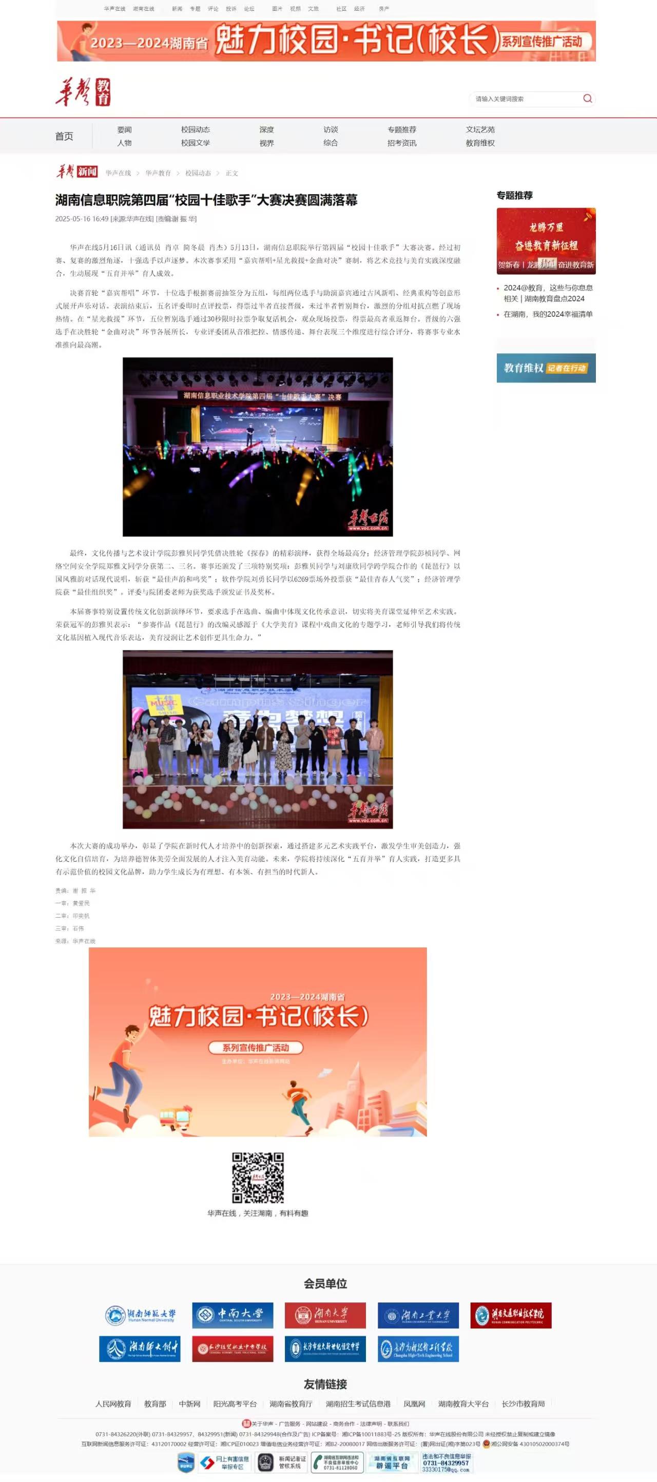 5月16日,华声在线发布《湖南信息职院第四届“校园十佳歌手”大赛决赛圆满落幕》