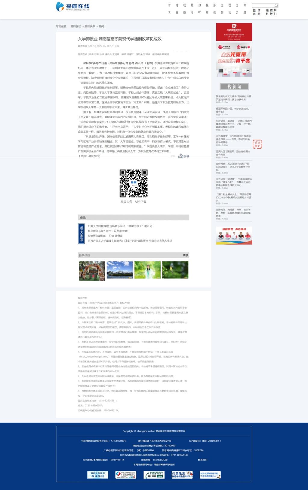 6月30日,星辰在线发布《入学即就业 湖南信息职院现代学徒制改革见成效》