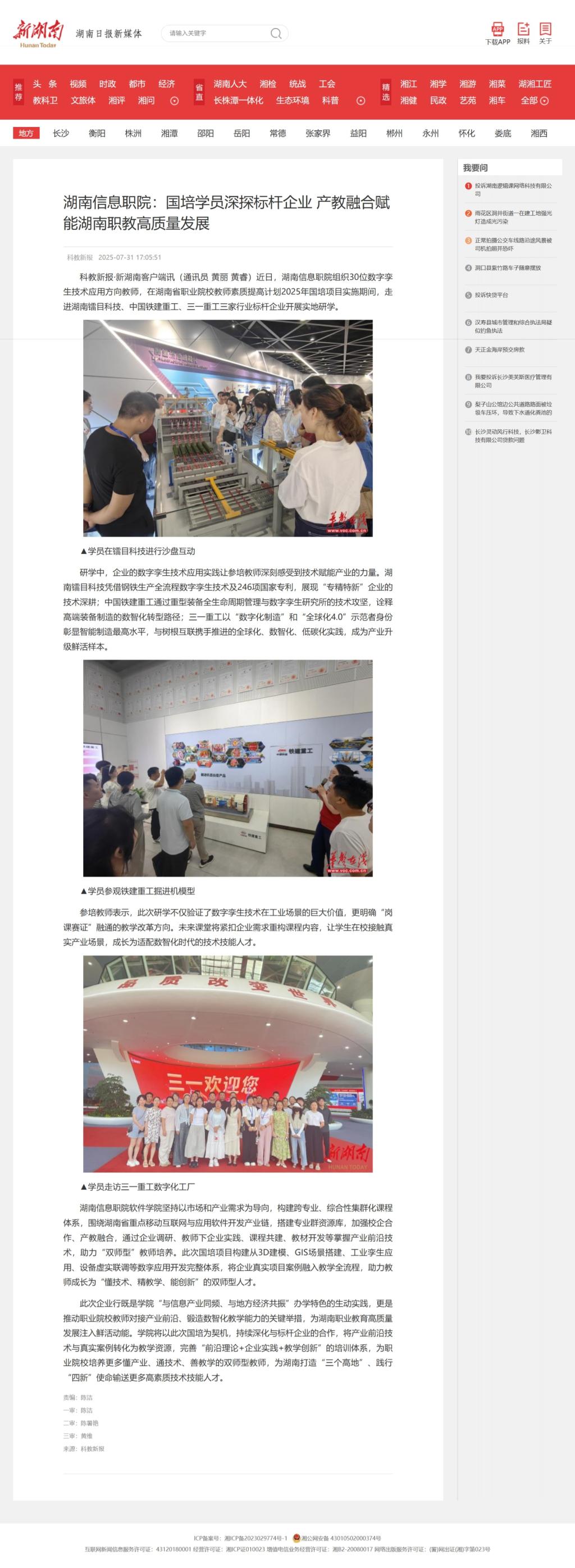 7月31日,新湖南发布《湖南信息职院:国培学员深探标杆企业 产教融合赋能湖南职教高质量发展》