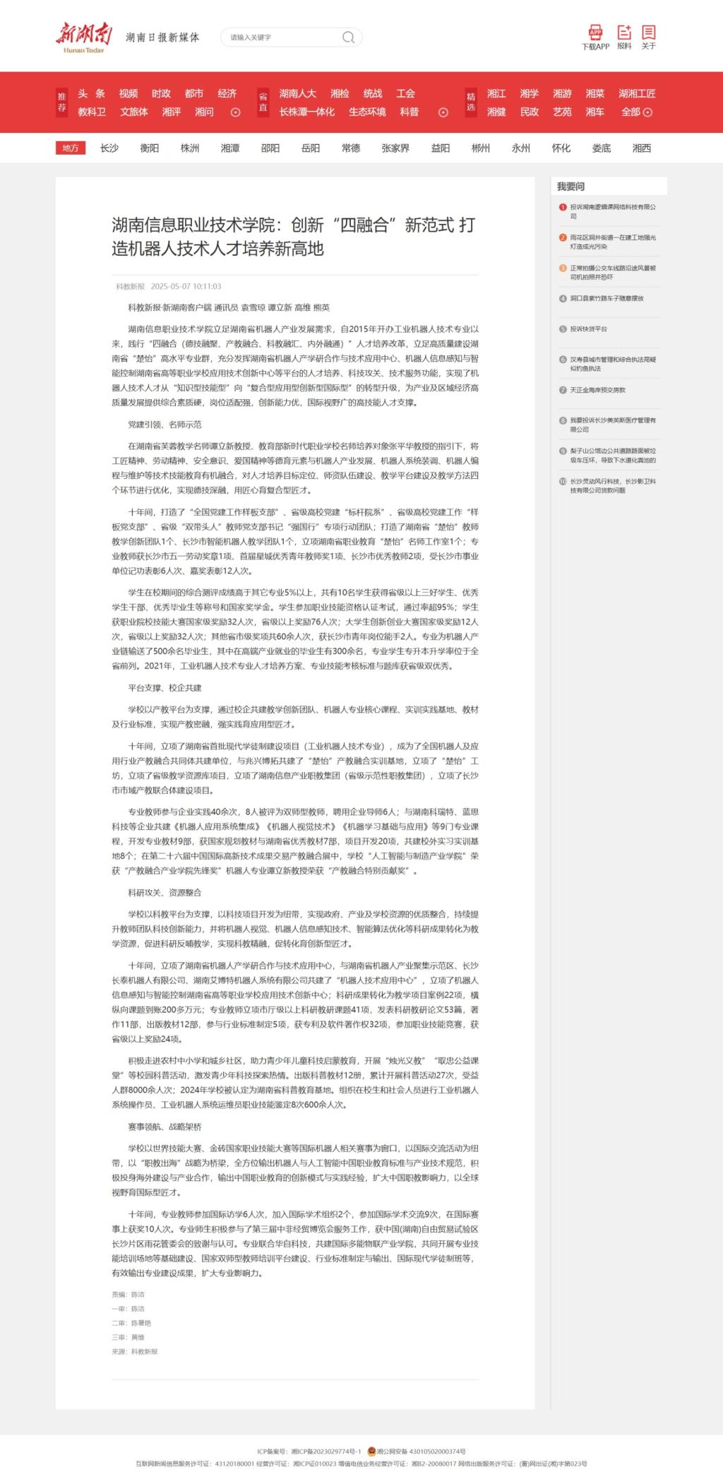 5月7日,新湖南发布《beat365英国官方网站:创新“四融合”新范式 打造机器人技术人才培养新高地》