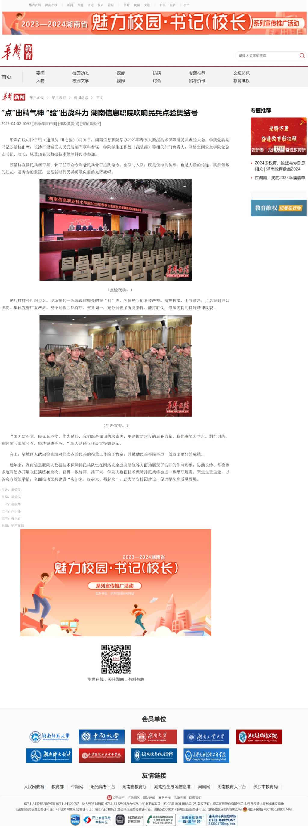 4月2日,华声在线发布《“点”出精气神 “验”出战斗力 湖南信息职院吹响民兵点验集结号》