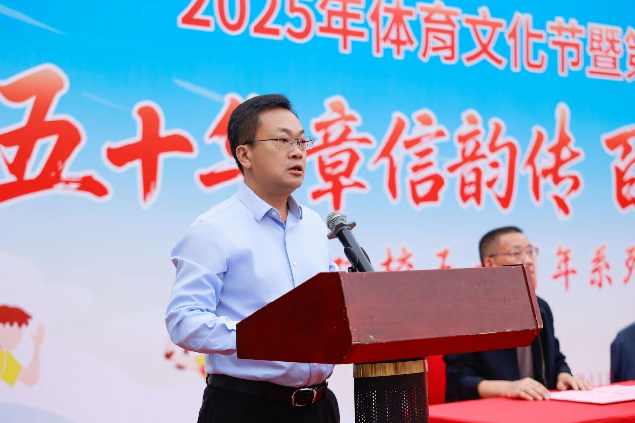 朱焕桃代表学院向精心筹备本届运动会的工作人员致以诚挚谢意,向即将驰骋赛场的运动员、公正执裁的裁判员致以亲切问候。他指出,本届运动会的主题“五十华章信韵传,百年梦想健步启”,既是对学院办学五十年的深情致敬,更是对新时代教育精神与体育精神的铿锵宣言。他强调,五十年风雨兼程,铸就“家国共担”的铮铮风骨;赛场风云际会,要彰显“体育强国”的时代新风;面向崭新未来,要肩负“薪火相传”的历史使命。全体师生要以本次运动会为契机,在竞技场上奋力拼搏、在学业上追求卓越、在人生道路上勇往直前,让拼搏的身影成为“奋斗有我”的生动注脚,以昂扬的姿态吹响“强国有我”的冲锋号角!